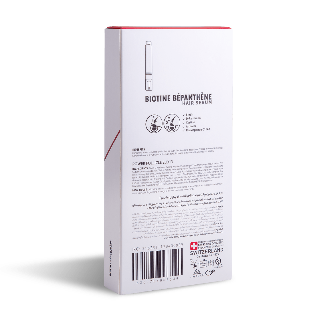 قفل انتهای ظرف را باز کنید و با استفاده از اپلیکاتور انتهایی مقدار کافی از سرم بیوتین بپانتن را دو بار در روز مستقیما بر روی پوست سر تمیز قرار دهید. محصول را با نوک انگشتان و با حرکات دورانی در قسمت کف سر و ریشه مو ماساژ دهید.