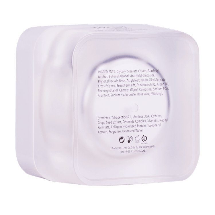 - عملکرد سفتکنندگی و لیفتینگ پوست صورت با داشتن ترکیبات فعال بهبود دهنده کشسانی و مقاومت پوست مثل عصاره سلول بنیادی رز آلپ، BeautiFerm Lift، سدیم هیالورونات، رتینیل پالمیتات، سیمدتوکس، روغن آرگان، شیباتر، تتراپپتاید-۲۱، کمپلکس سرامید، ویوندین و پروتئین کلاژن هیدرولیز شده