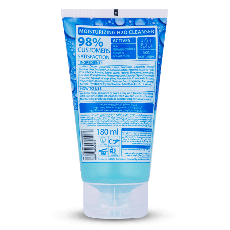 ژل شوینده آبرسان پوست تراست به خاطر داشتن ترکیبات فعال سدیم پی سی ای، زایلیتول و کمپلکس اولیگوساکاریدی موجب «حفظ رطوبت پوست» و آبرسانی مناسب سلولهای لایه اپیدرم میشود. کمپلکس سرامید این محصول، با شرکت در ساختار غشاء سلولهای پوستی به استحکام و حفظ سلولهای پوستی و «جلوگیری از ایجاد چینوچروک در پوست» کمک میکند. ترکیب آمینواسیدهای موجود در این ژل نیز به همراه ویتامین B5 باعث تغذیه سلولهای پوستی حین پاکسازی پوست میشود. این شوینده علاوه بر «پاکسازی مناسب پوست از آلودگیها»، به بهبود خشکی و تنظیم مقدار pH پوست کمک کرده و با آبرسانی سلولهای پوستی باعث حفظ استحکام پوست و جلوگیری از ایجاد لک و آکنه میشود.