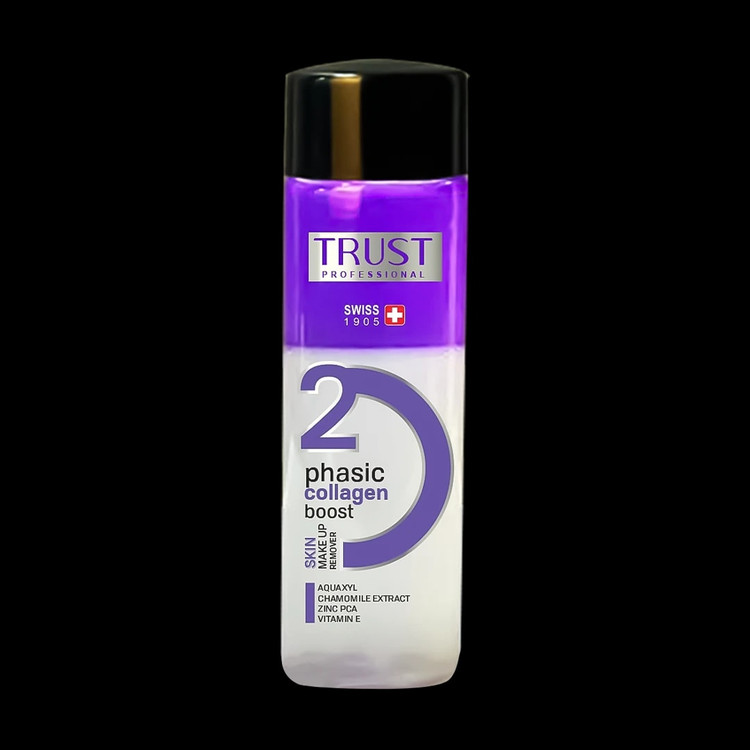 محلول پاککننده آرایش دوفازی تراست، تمام آلودگیها و مواد آرایشی معمولی و ضدآب را از پوستمان پاک کرده و اثری از آنها به جای نمیگذارد. این محصول با وجود ماده مؤثره پروتئین هیدرولیز شده کلاژن از پیری پوست جلوگیری کرده، باعث استحکام پوست و جلوگیری از باز شدن منافذ پوست می شود. محلول دوفازی ضمن پاککنندگی پوست به خاطر داشتن ماده مؤثره آکواکسیل در ساختار خود، پوست را آبرسانی کرده و مانع از تبخیر آب پوستی میشود. همچنین با داشتن عصاره بابونه و ویتامین ای در ترکیباتش از التهابات پوستی جلوگیری کرده، آن را نرم و باطراوت میکند و مانع از آسیب رادیکالهای آزاد به پوست میشود. زینک پی سی ای در فرمولاسیون محصول ترشح سبوم را کنترل کرده، منافذ پوستی را جمع کرده و از ایجاد جوش و آکنه روی پوست جلوگیری میکند. در ضمن عصاره روغن بادام در این محلول دوفازی تراست به آبرسانی، تقویت پوست و پاکسازی کامل مواد آرایشی از روی پوست کمک شایانی میکند.