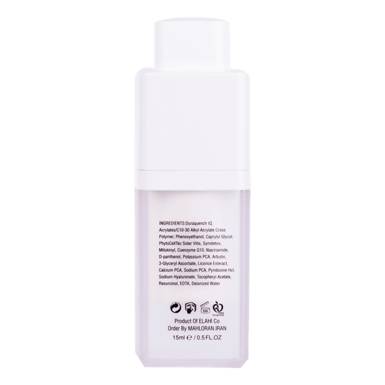 - روشن کننده و برطرف کننده لک¬های پوستی با داشتن ترکیبات فعال رزورسینول، آربوتین، گلیسریل آسکوربات و عصاره شیرین بیان، و با دارا بودن ترکیبات آنتی¬اکسیدان عصاره سلول بنیادی دانه انگور، کوآنزیم کیوتن، نیاسین¬آمید، عصاره شیرین بیان و توکوفریل استات