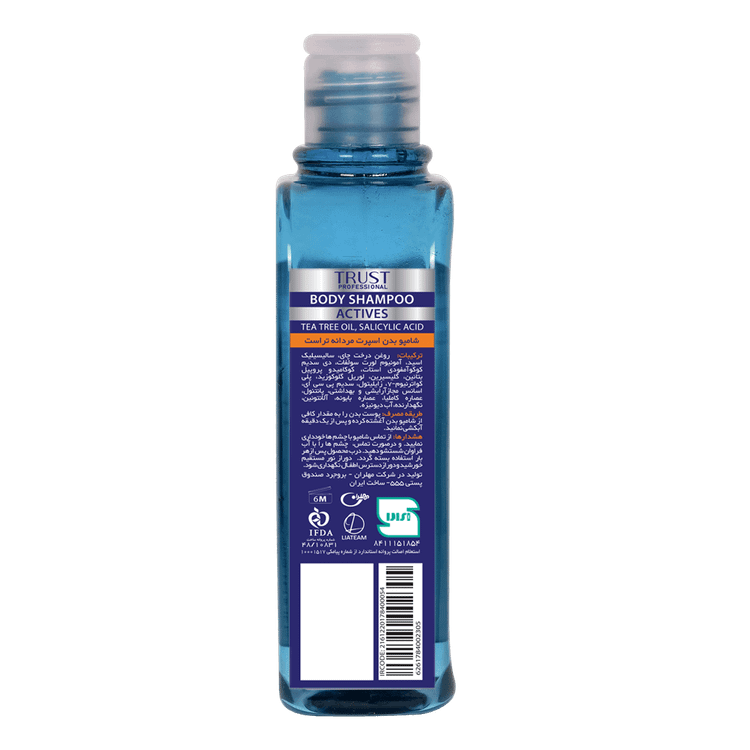 شامپو بدن اسپرت مردانه تراست، حاوی منتول و زینک PCA در ساختار خود بوده و با کنترل میزان تعریق بدن، از تکثیر باکتریها روی پوست جلوگیری کرده و حس خنکی و طراوت به آن میبخشد. این محصول گزینه مناسبی برای استحمام بعد از ورزش است.