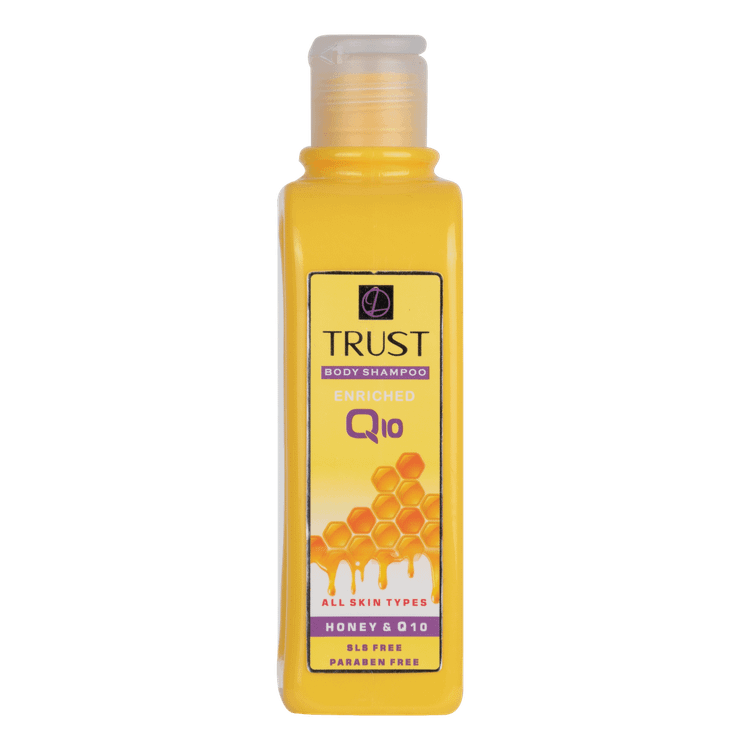 شامپو بدن عسل و Q10 تراست، حاوی عسل است که لایه رویی پوست را آبرسانی میکند و چین و چروکهای پوست را کاهش میدهد. همچنین این شامپو بدن با داشتن کوآنزیم کیوتن به تقویت سد دفاعی پوست کمک میکند و جلوی آسیب پرتوهای UV خورشید را میگیرد. عصاره بابونه موجود در این محصول ضدالتهاب و روشنکننده پوست است.