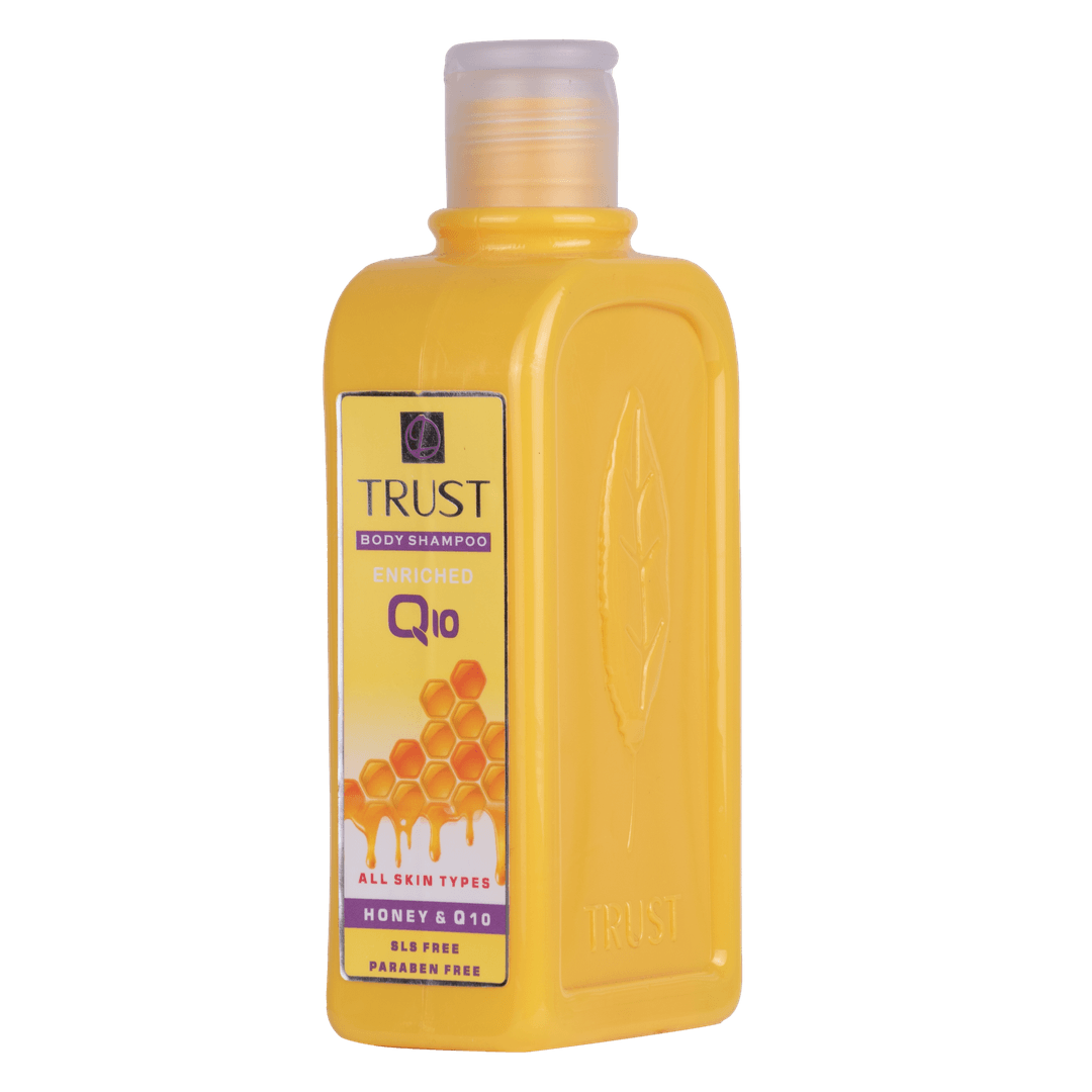 شامپو بدن عسل و Q10 تراست، حاوی عسل است که لایه رویی پوست را آبرسانی میکند و چین و چروکهای پوست را کاهش میدهد. همچنین این شامپو بدن با داشتن کوآنزیم کیوتن به تقویت سد دفاعی پوست کمک میکند و جلوی آسیب پرتوهای UV خورشید را میگیرد. عصاره بابونه موجود در این محصول ضدالتهاب و روشنکننده پوست است.