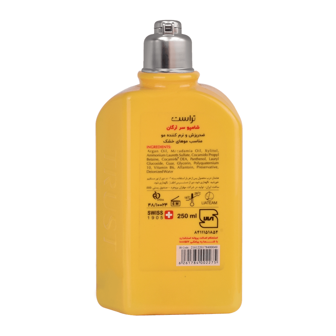 شامپو سر آرگان تراست، با داشتن روغن آرگان و روغن ماکادمیا در ترکیبات خود، تارهای خشک و شکننده موهای شما را نرم کرده و با ایجاد یک لایه چربی در سطح پوست شما، به حفظ رطوبت کمک میکند. زایلیتول موجود در این شامپو نیز به آبرسانی سریع و طولانیمدت پوست سر شما کمک کرده و موجب شادابی موهای شما میشود.