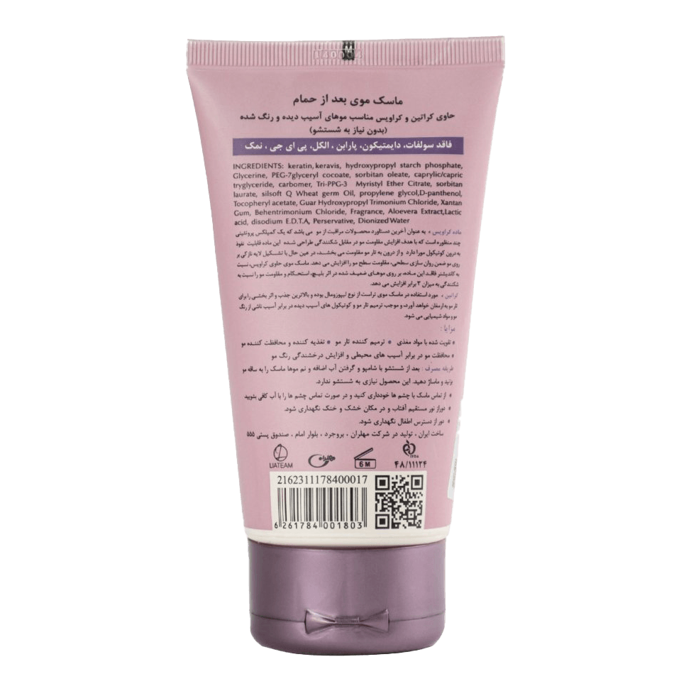 بعد از شستشو با شامپو و گرفتن آب اضافه و نم موها ماسک را به ساقه مو بزنید و ماساژ دهید. این محصول نیازی به شستشو ندارد
