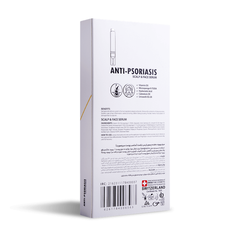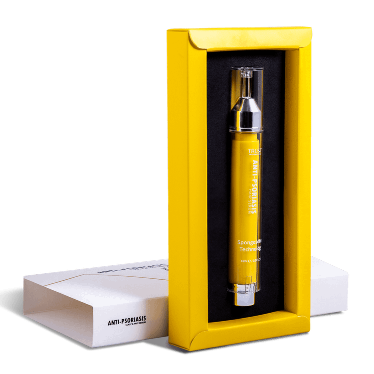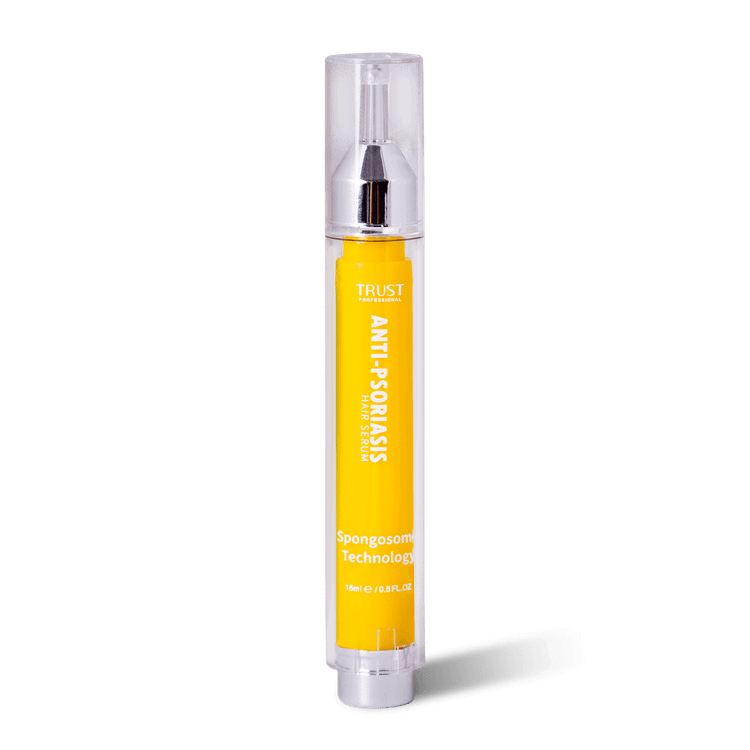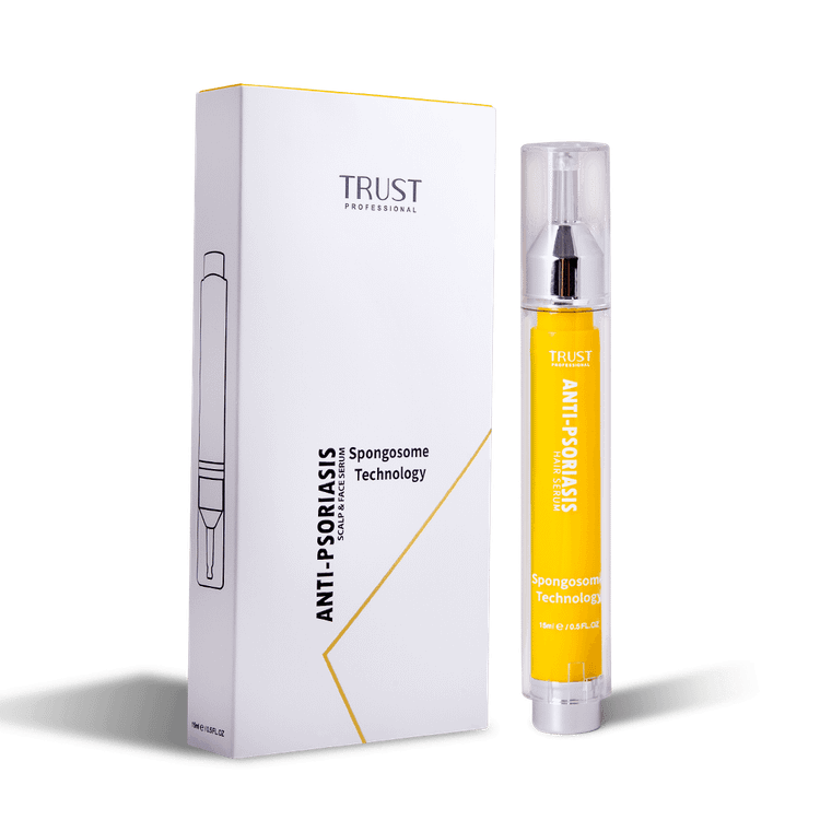 پسوریازیس نوعی بیماری خودایمنی پوستی است که راشها یا پلاکهای پوستی و ضایعاتی را در پوست سر، صورت، زانوها، بازوها و قسمت بالا تنه ایجاد کرده و به عنوان یک بیماری مزمن و بلند مدت شناخته میشود. این پلاکها دردناک هستند و با داشتن یک سیکل مشخص به مدت چند هفته تا چند ماه بروز پیدا کرده و پلاکهایی که رنگ متغیری دارند معمولا به صورت پوستههای صورتی تا قرمز بروز پیدا میکنند. این بیماری با علایم مختلفی مثل خشکی پوست با خونریزی، خارش و سوزش همراه است. پسوریازیس نواحی مختلفی از بدن را درگیر میکند که یکی از مهمترین قسمتها پوست سر و صورت است. شیوع پسوریازیس در پوست سر و صورت منجر به خشکی پوست شده و در نهایت باعث آسیب پوست و شکنندگی و ریزش موها میشود. بنابراین برای کنترل علایم پسوریازیس میبایست از محصولات مراقبتی مناسب استفاده کرد. سرم بهبود دهنده پسوریازیس تراست با بهرهگیری از تکنولوژی اسپانجوزوم به طور موثری به نفوذ و رهاسازی پیوسته ترکیبات لایهبردار و بهبود دهنده ساخت سلولهای جدید در پوست سر و صورت کمک کرده و با بهبود پلاکهای پسوریازیس و کاهش علایم بیماری، سلامت پوست را حفظ میکند. این محصول با دارا بودن ترکیبات موثره آبرسان و ضد التهاب، از خشکی پوست سر و صورت جلوگیری کرده و با مهار واسطههای التهابی، از پیشرفت عارضه جلوگیری کرده و کمک شایانی به بهبود ضایعات پسوریازیس میکند.