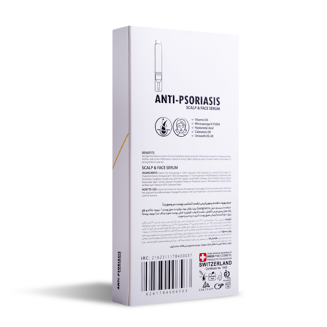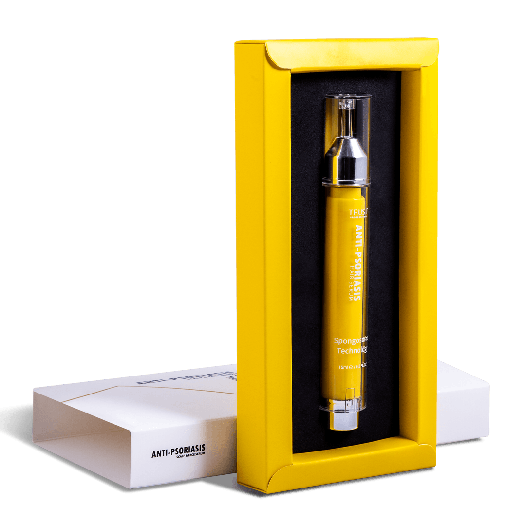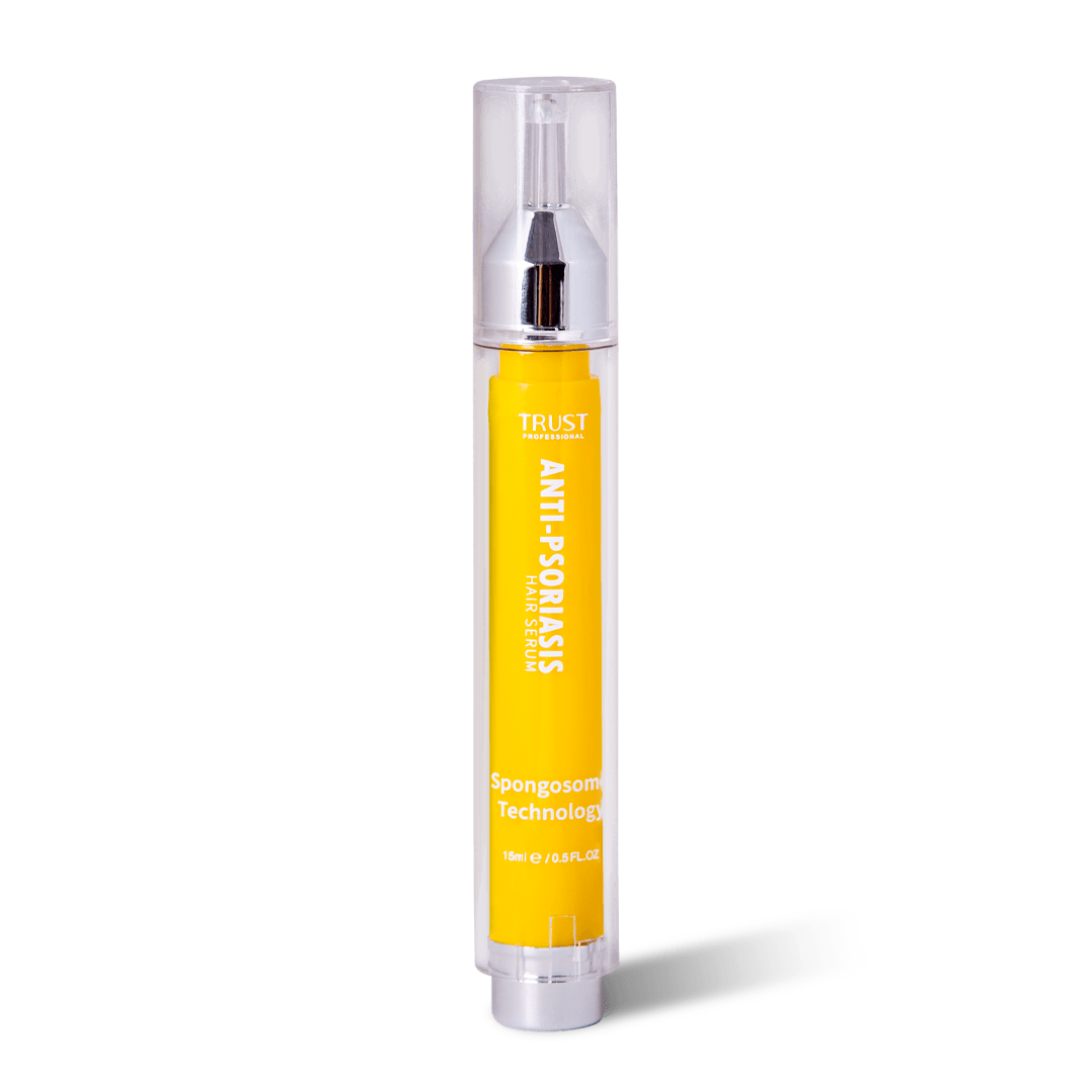 پسوریازیس نوعی بیماری خودایمنی پوستی است که راشها یا پلاکهای پوستی و ضایعاتی را در پوست سر، صورت، زانوها، بازوها و قسمت بالا تنه ایجاد کرده و به عنوان یک بیماری مزمن و بلند مدت شناخته میشود. این پلاکها دردناک هستند و با داشتن یک سیکل مشخص به مدت چند هفته تا چند ماه بروز پیدا کرده و پلاکهایی که رنگ متغیری دارند معمولا به صورت پوستههای صورتی تا قرمز بروز پیدا میکنند. این بیماری با علایم مختلفی مثل خشکی پوست با خونریزی، خارش و سوزش همراه است. پسوریازیس نواحی مختلفی از بدن را درگیر میکند که یکی از مهمترین قسمتها پوست سر و صورت است. شیوع پسوریازیس در پوست سر و صورت منجر به خشکی پوست شده و در نهایت باعث آسیب پوست و شکنندگی و ریزش موها میشود. بنابراین برای کنترل علایم پسوریازیس میبایست از محصولات مراقبتی مناسب استفاده کرد. سرم بهبود دهنده پسوریازیس تراست با بهرهگیری از تکنولوژی اسپانجوزوم به طور موثری به نفوذ و رهاسازی پیوسته ترکیبات لایهبردار و بهبود دهنده ساخت سلولهای جدید در پوست سر و صورت کمک کرده و با بهبود پلاکهای پسوریازیس و کاهش علایم بیماری، سلامت پوست را حفظ میکند. این محصول با دارا بودن ترکیبات موثره آبرسان و ضد التهاب، از خشکی پوست سر و صورت جلوگیری کرده و با مهار واسطههای التهابی، از پیشرفت عارضه جلوگیری کرده و کمک شایانی به بهبود ضایعات پسوریازیس میکند.